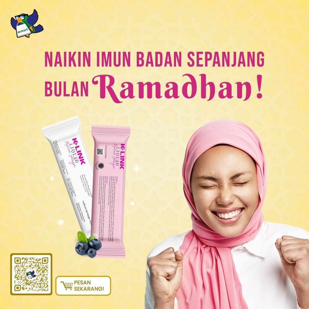 Padahal puasa tidak bisa dijadikan alasan kamu engga merawat kulitmu❌ soalnya kamu bisa cukupi nutrisi kulitmu dengan minum 1 sachet K-Link Liquid Marine Collagen💕 tiap sahur🌙 seperti aku.